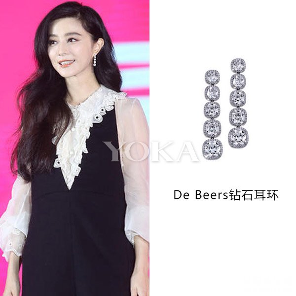 ![]() 昨天,范冰冰身穿黑白色连衣裙搭配戴比尔斯钻石耳环亮相,特别清新的造型。